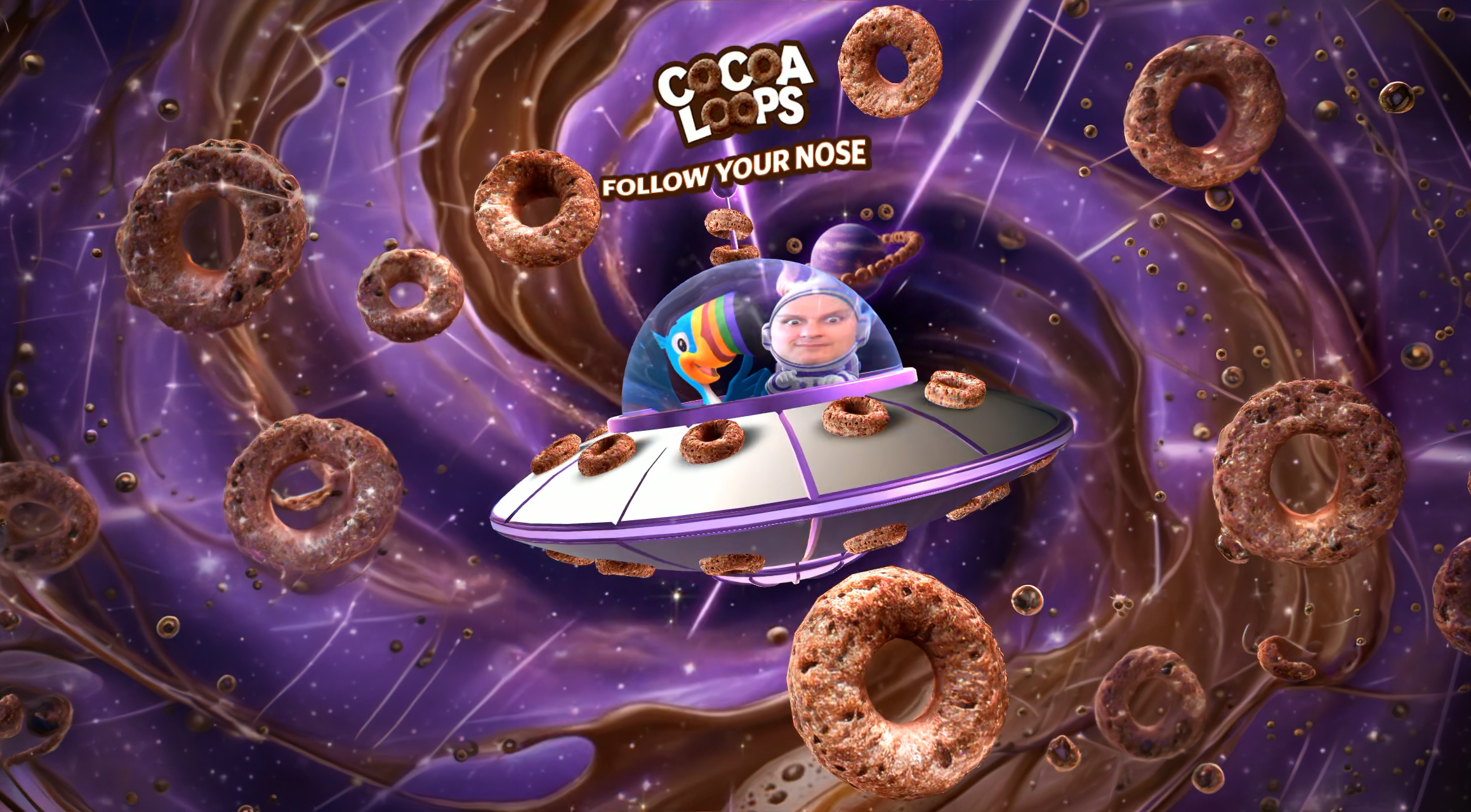 Toucan Sam takes over your camera and whisks you across three worlds soaked in chocolatey milk and Cocoa Loops. Kellogg's that turns every selfie into an adventurous scene.